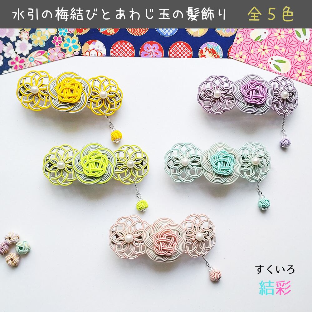 【新色】水引 髪飾り 【梅結び&曼荼羅結びとあわじ玉・淡藤】和装 着物 浴衣 和風
